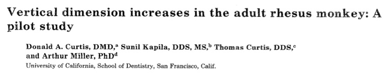之前有提到在Carlsson1979年的研究增加OVD然後沒有臨床上的影響, 因為有些研究指出增加OVD會造成TMD而有另外一些研究認為不會. 這個研究是在猴子上做的.