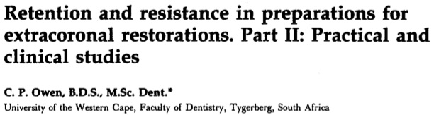 關於Tooth preparation如何達到最佳的Retention&Resistance, 有很多的paper. 這兩篇其實回顧的重點都整理在圖片上,讓我們一起看圖說故事.