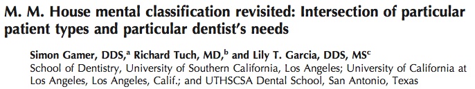 Dr. M.M. House在1950時將全口無牙的患者的精神狀態分成四種:Philosophical, Exacting, Hysterical, Indifferent. 當時的分類法其實只有針對患者, 而沒有去考量到醫師以及醫師與患者間的交流. 於是這群作者就針對House分類法提出他們的討論建議.