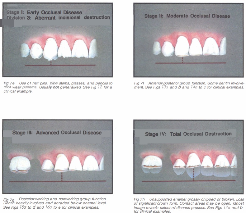 這篇文章的題目其實是Occlusal disease的分類, 但是大多是著墨在牙齒磨耗的部分. 主要的細節請直接看內文, 重點是在圖的部分.