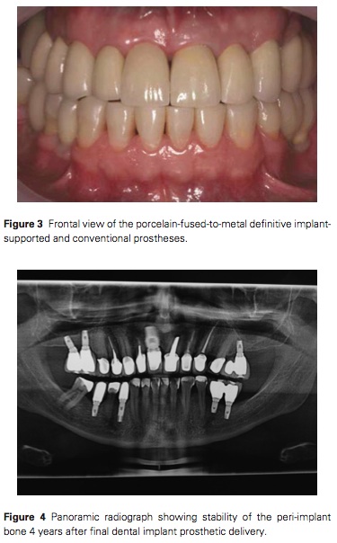 這個case提醒了我們關於Pseudo-Class III的重建過程中, 取CR以及看Ceph側顱分析的重要性. 雖然這個case運氣很好的是這患者很有錢, 缺幾顆就種幾顆. 一開始要先確認咬合, 結果在調整患者的咬合後就可以發現患者因為後牙缺失然後習慣將下顎向前移. 先用interim prosthesis去改, 然後種implant, 再改interim 4個月, 最後再給final.