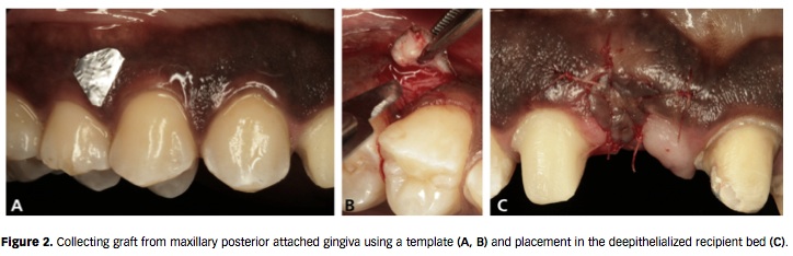 這個case是一名35歲黑人女性, 因為上顎右正中門牙植牙失敗後, 傷口癒合處失去了pigmentation, 在美觀區看起來很明顯. 後來決定在後牙非美觀區取一塊Free gingiva graft修補, 在經過20個月的追蹤效果很好.