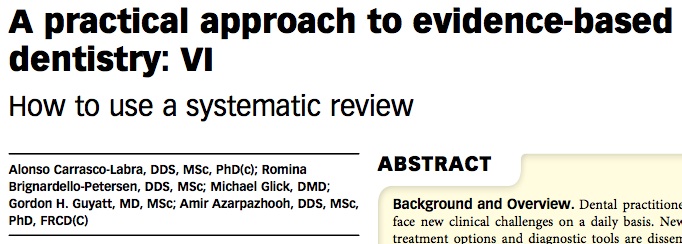 這篇文章是在說明如何使用review article去實行evidence based dentistry, 之前也有幾篇文章在講這個主題. 有興趣者請看全文, 我也是擷取重點如下:
