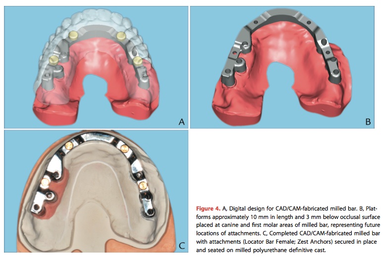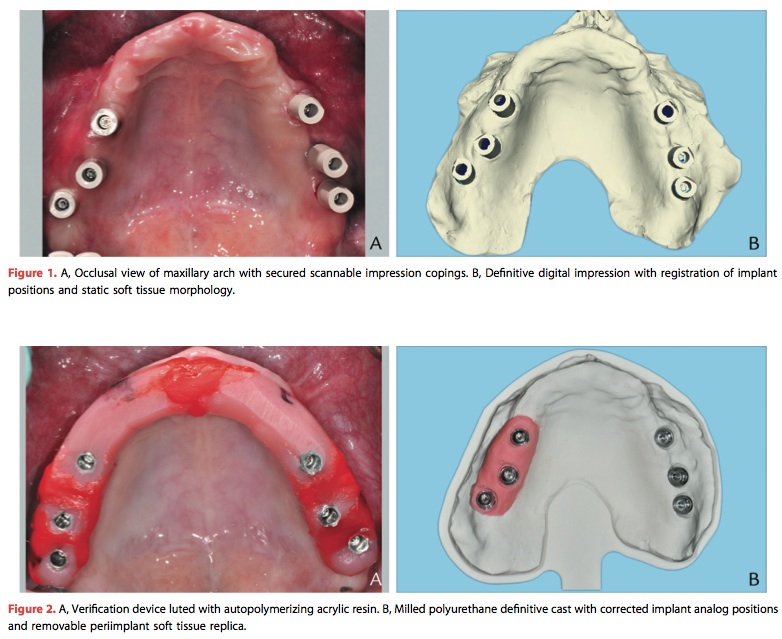 這篇文章一步一步得去解釋怎麼去製作上顎implant implant bar retained overdenture, 如果沒有做過的醫師應該要好好的一步一步照文章的步驟製作. 口掃機是未來的趨勢, 這個case是用iTero, 其實是當今最好的幾種了, 可是還是要做口內調整…可見最準的印模材或是口掃機都一定要在用verfied jig去測試.