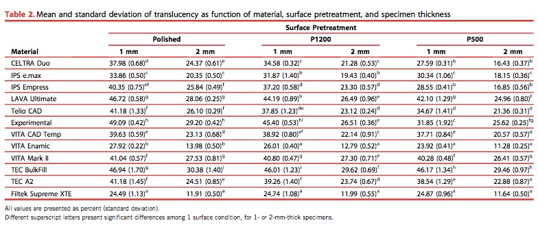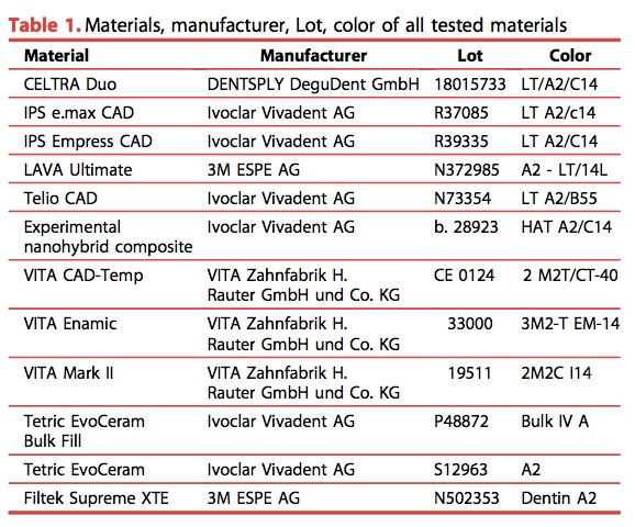 不同CAD/CAM材料在不同厚度及粗糙度之下的光線穿透度—Awad(2015) 2015 年 09 月 16 日2015 年 09 月 12 日 yehhsinchi 固定式假牙固定式假牙 JPD 2015 Vol.113 P.534-540 這個研究是將多種CAD/CAM的材料, 去將它切成1mm, 2mm的厚度, 然後分成polished, P1200, P500的表面打磨程度, 去測試他的透光性. 結果當然是打磨後的亮度最好, 而且是明顯的好, 所以一定要polish到極致. 另外透光性跟材料以及所謂的世代並沒有關係, 而是跟產品本身是最大的關係…至於哪個最好?看自己使用的習慣決定, 因為有時候我們反而希望不透光 分享此文: 按一下即可分享至 X(在新視窗中開啟) X 按一下以分享至 Facebook(在新視窗中開啟) Facebook 喜歡 正在載入...