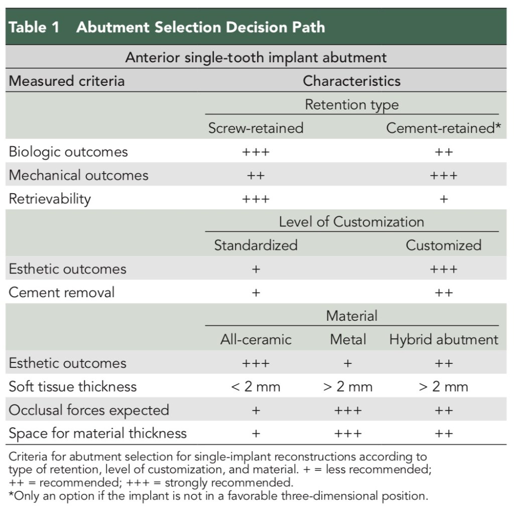 臨床上對於植牙的abutment材質或客製化的選擇—Zarauz(2020) 2021 年 10 月 15 日2021 年 10 月 11 日 yehhsinchi 牙科材料、植牙 ijprd-2020-vol.40-p.31-37下載 這篇文章也是因為他的表格做得滿好的。一般來說,如果能夠客製化,我是覺得應該要客製化。因為可以適當的塑型牙肉。那材料的部分,我一定是不會用全鋯的abutment的,因為可能會碎掉或是會損傷植體。那如果需要美觀,可以用ti-base的方式。 分享此文: 按一下即可分享至 X(在新視窗中開啟) X 按一下以分享至 Facebook(在新視窗中開啟) Facebook 喜歡 正在載入...