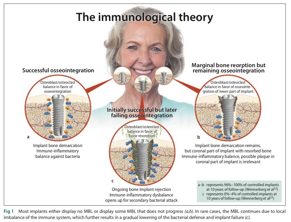 免疫系統的不平衡會不會造成植牙周圍的骨流失?—Albrektsson(2020) 2021 年 10 月 24 日2021 年 10 月 22 日 yehhsinchi 植牙 ijomi-2020-vol.35-p.495-502下載 雖然植牙已經有長期的實戰經驗及研究,目前使用的植體材料仍然是以純鈦金屬或是接近純鈦的鈦合金為主流。那鈦會不會引起發炎反應?當然還是會,但是大部分的情況下,會跟人體達成一定程度的平衡。那如果不平衡? 我是覺得內文寫的,是需要更多的研究的,感覺比較像是新的想法或是未來研究的方向。因為免疫系統人人不同,目前來說只能說已目前的所知,可能有0-4%的機會會有因為免疫反應讓植牙周圍骨頭吸收進而導致失敗。 分享此文: 按一下即可分享至 X(在新視窗中開啟) X 按一下以分享至 Facebook(在新視窗中開啟) Facebook 喜歡 正在載入...
