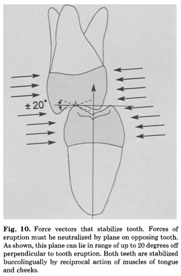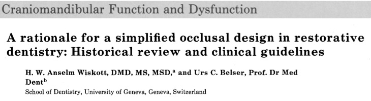 植牙的成功除了手術的部分之外, 假牙咬合的設計是相當重要的. 這篇文章的作者群回顧了2013年之前的文獻, 想要找出到底理想的植牙支持假牙的咬合設計.