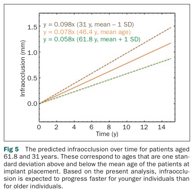 但是,十年差異幾乎都小於1mm。所以應該是可以調整的。只是還是要了解植牙infraocclusion的可能性。
